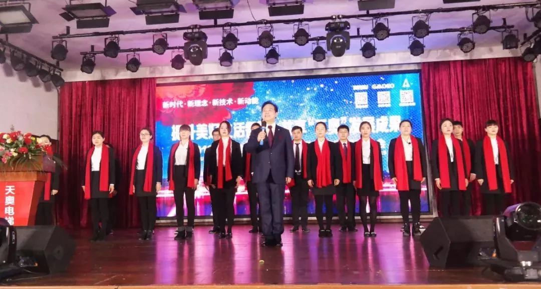 盛會的開始,是由全體“三奧人”在集團領(lǐng)導(dǎo)的帶領(lǐng)下,在昂揚的音樂中,共同起立齊聲高唱中國電梯行業(yè)首支企業(yè)形象、品牌形象歌曲,“三奧”旗下電梯產(chǎn)業(yè)之歌——《縱橫天地》。